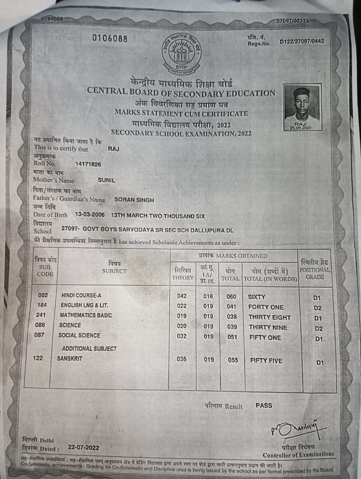 | Exam | Full Marks | Pass Marks | Marks Obtained |