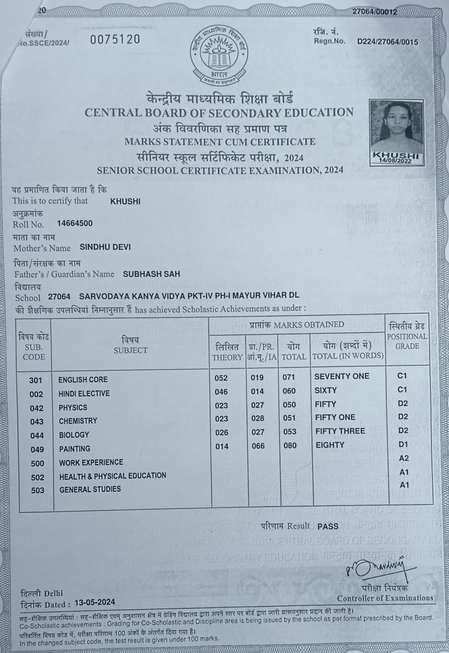 | Exam | Full Marks | Pass Marks | Marks Obtained |