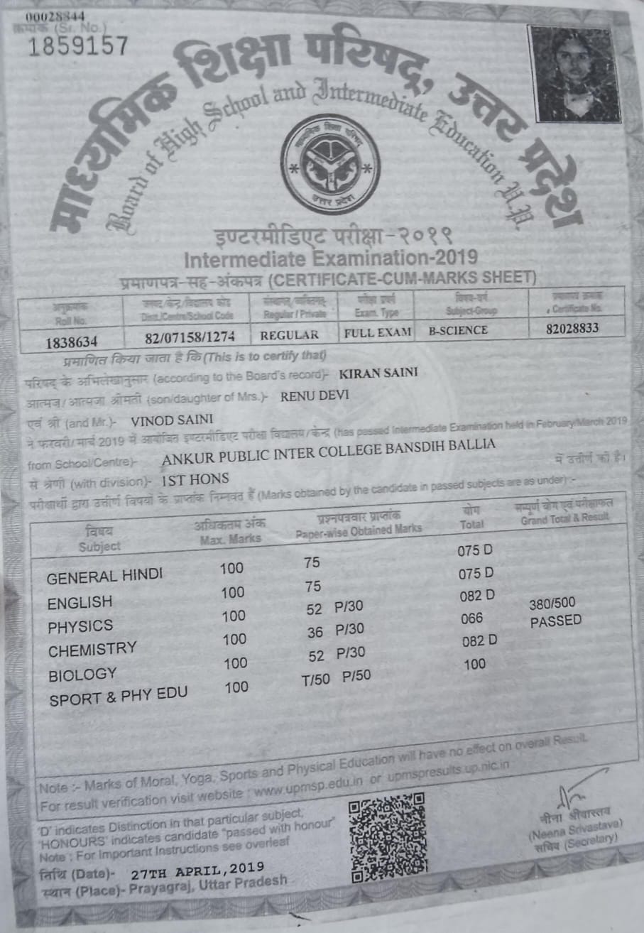 | Exam | Full Marks | Pass Marks | Marks Obtained |