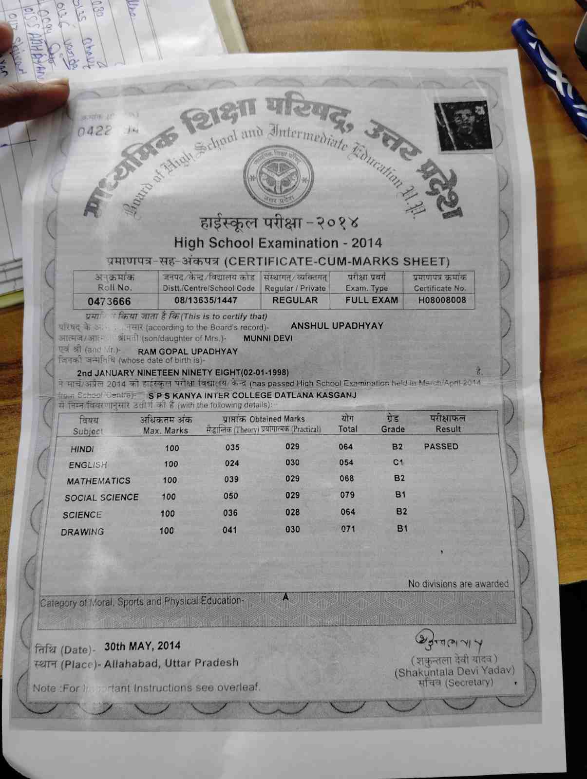| Exam | Full Marks | Pass Marks | Marks Obtained |