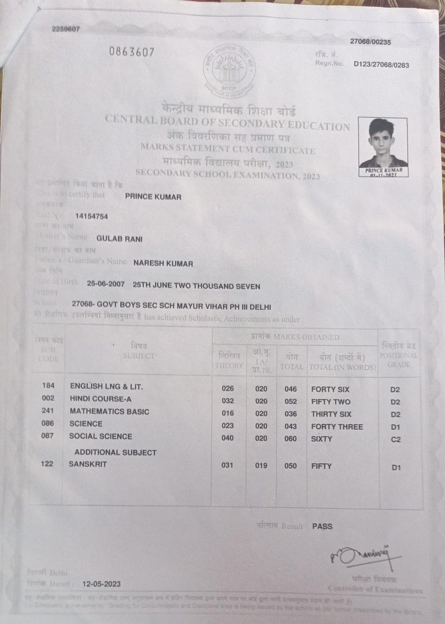 | Exam | Full Marks | Pass Marks | Marks Obtained |