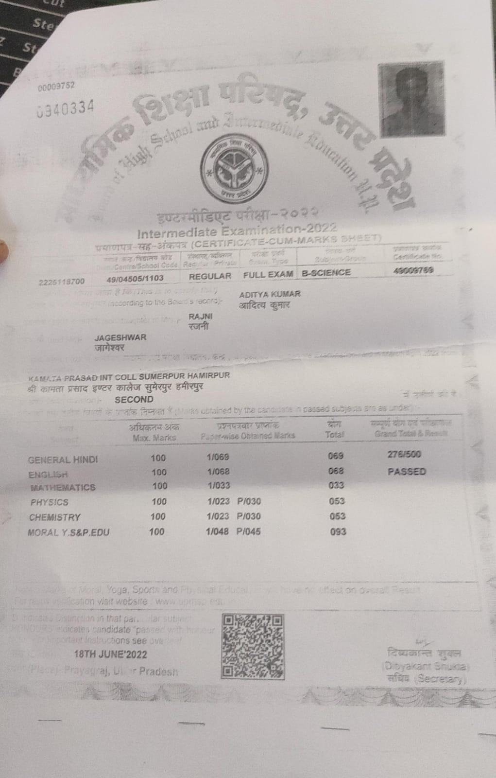 | Exam | Full Marks | Pass Marks | Marks Obtained |