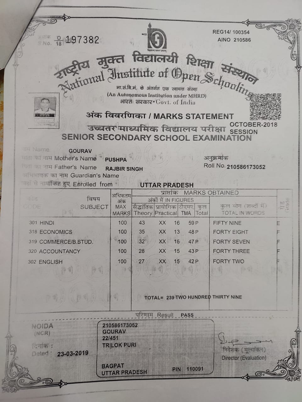 | Exam | Full Marks | Pass Marks | Marks Obtained |