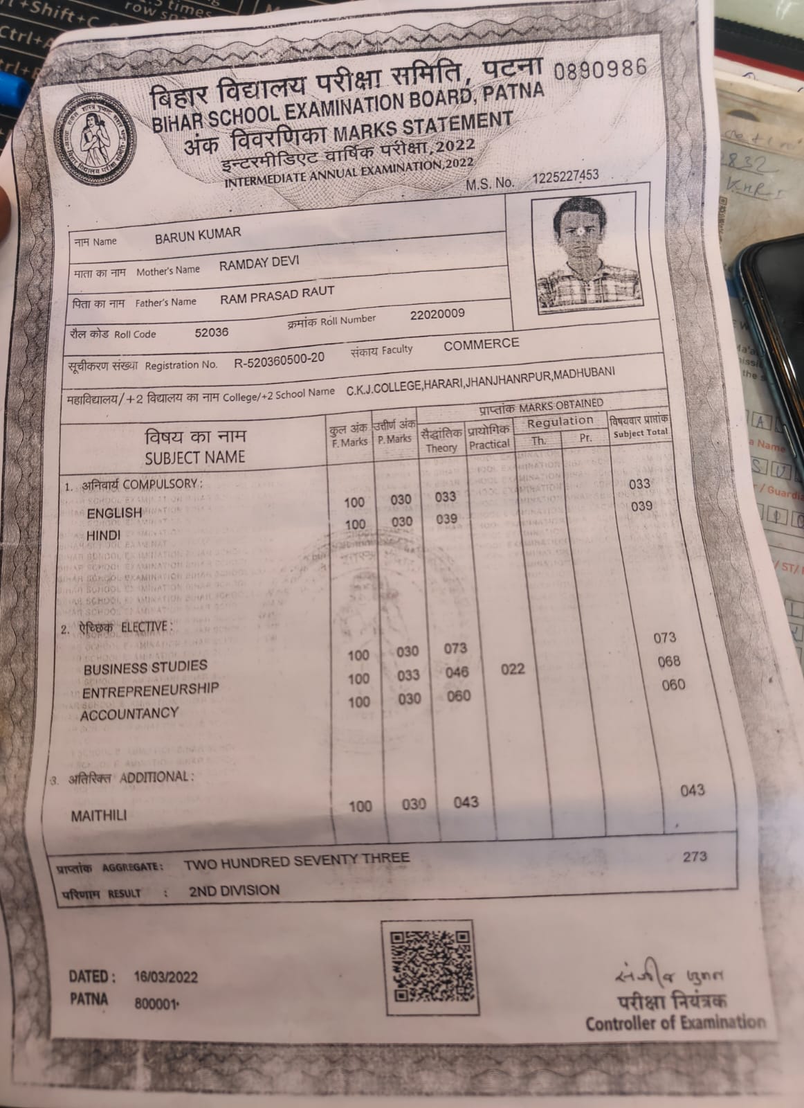 | : | Ram Prasad Raut | |