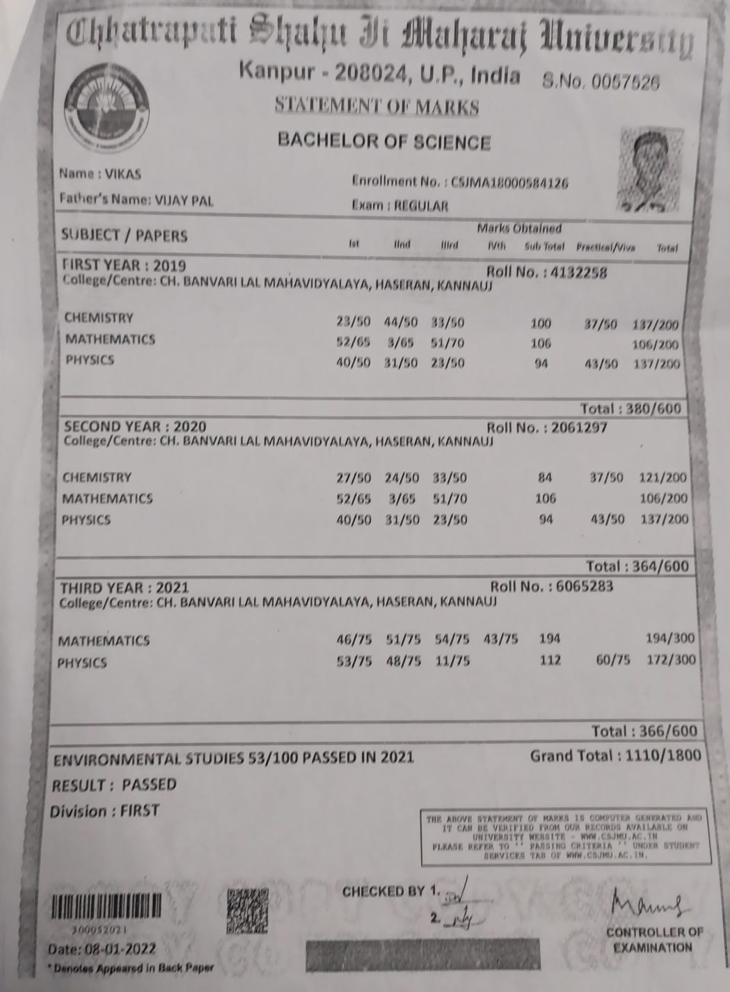 | Exam | Full Marks | Pass Marks | Marks Obtained |