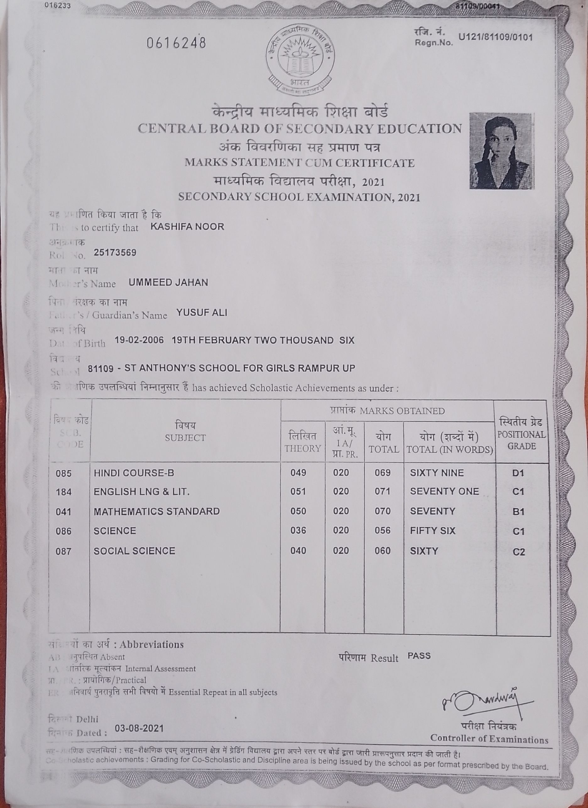 | Exam | Full Marks | Pass Marks | Marks Obtained |