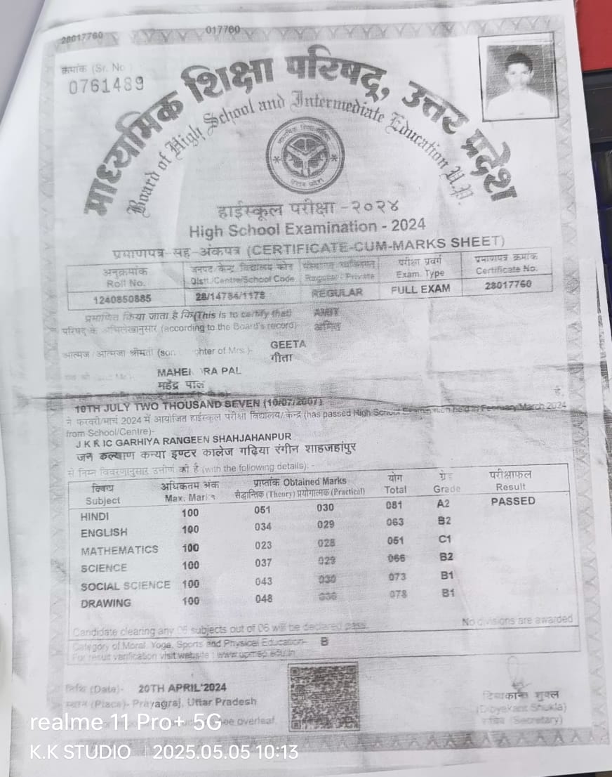 | Exam | Full Marks | Pass Marks | Marks Obtained |