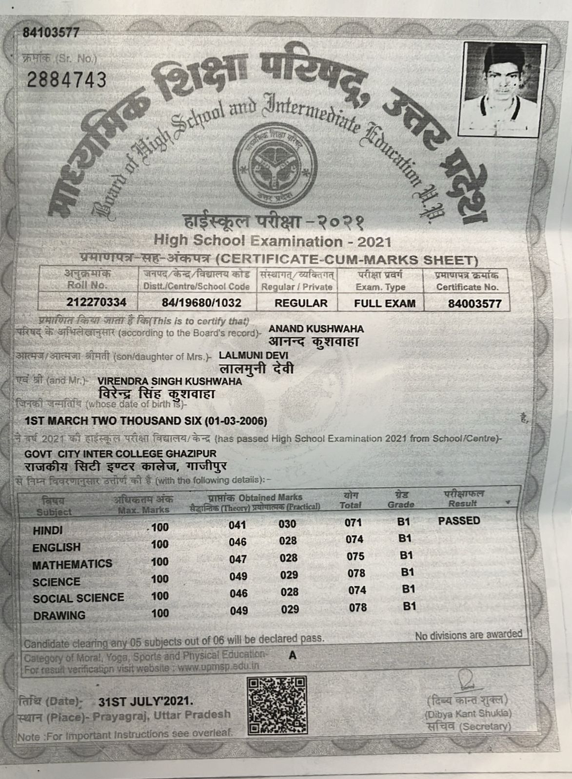 | Exam | Full Marks | Pass Marks | Marks Obtained |