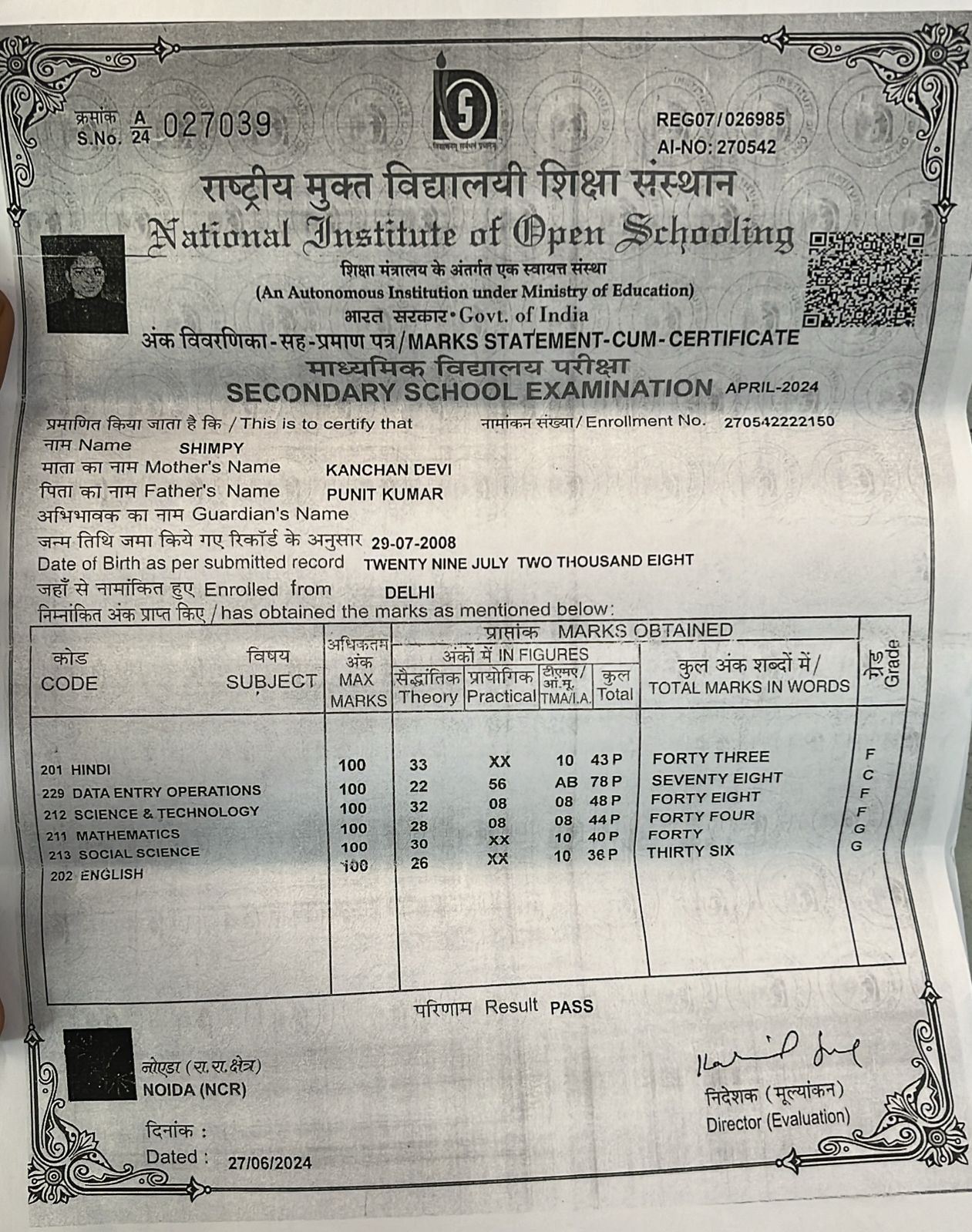| Exam | Full Marks | Pass Marks | Marks Obtained |