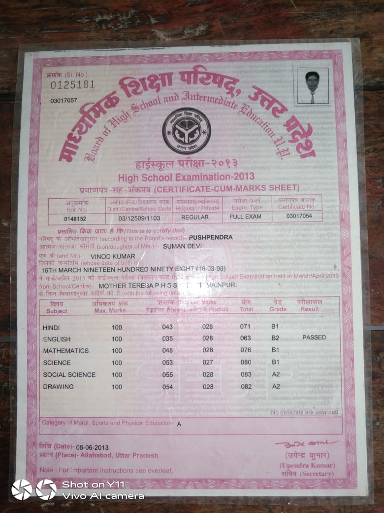 | Exam | Full Marks | Pass Marks | Marks Obtained |