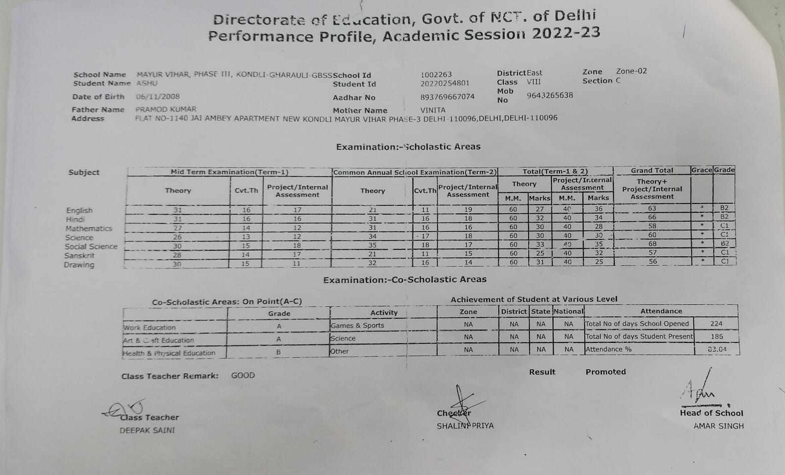 | Exam | Full Marks | Pass Marks | Marks Obtained |