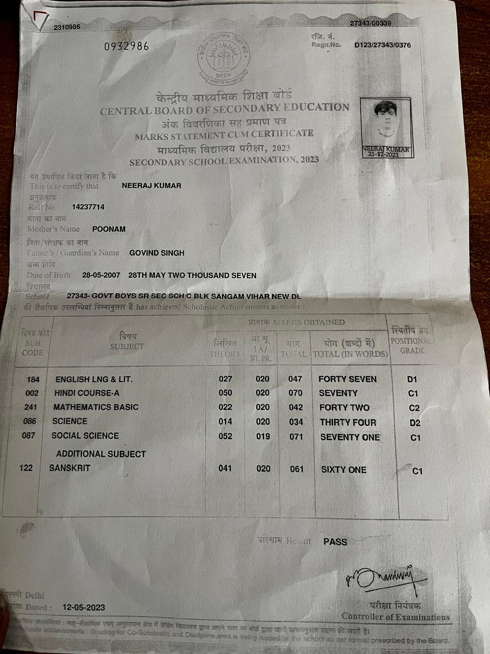 | Exam | Full Marks | Pass Marks | Marks Obtained |