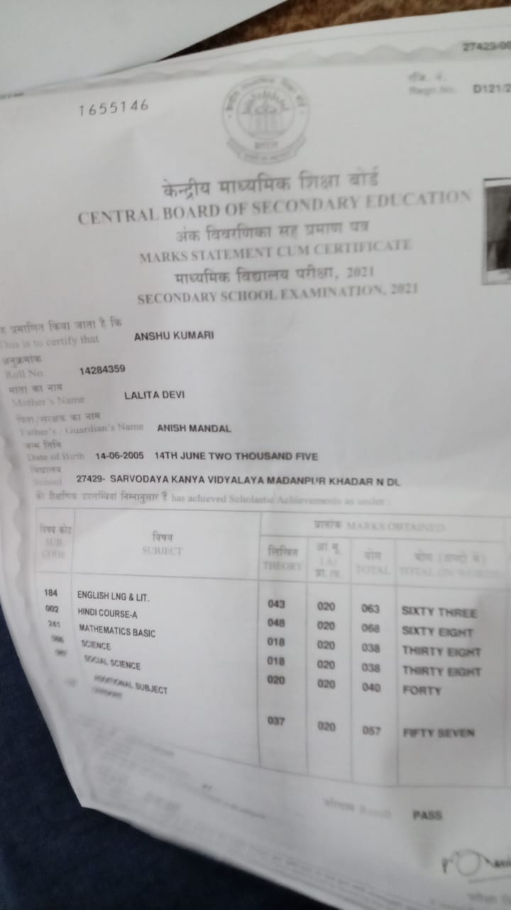 | Exam | Full Marks | Pass Marks | Marks Obtained |