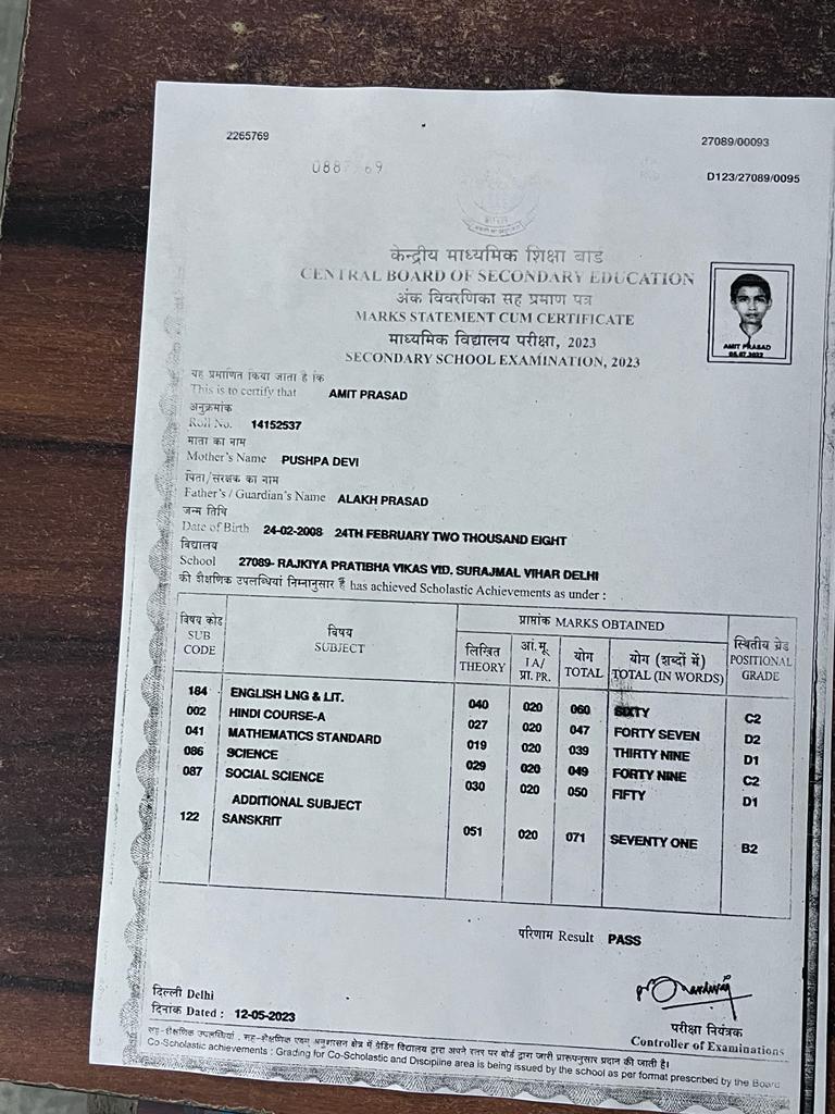 | Exam | Full Marks | Pass Marks | Marks Obtained |