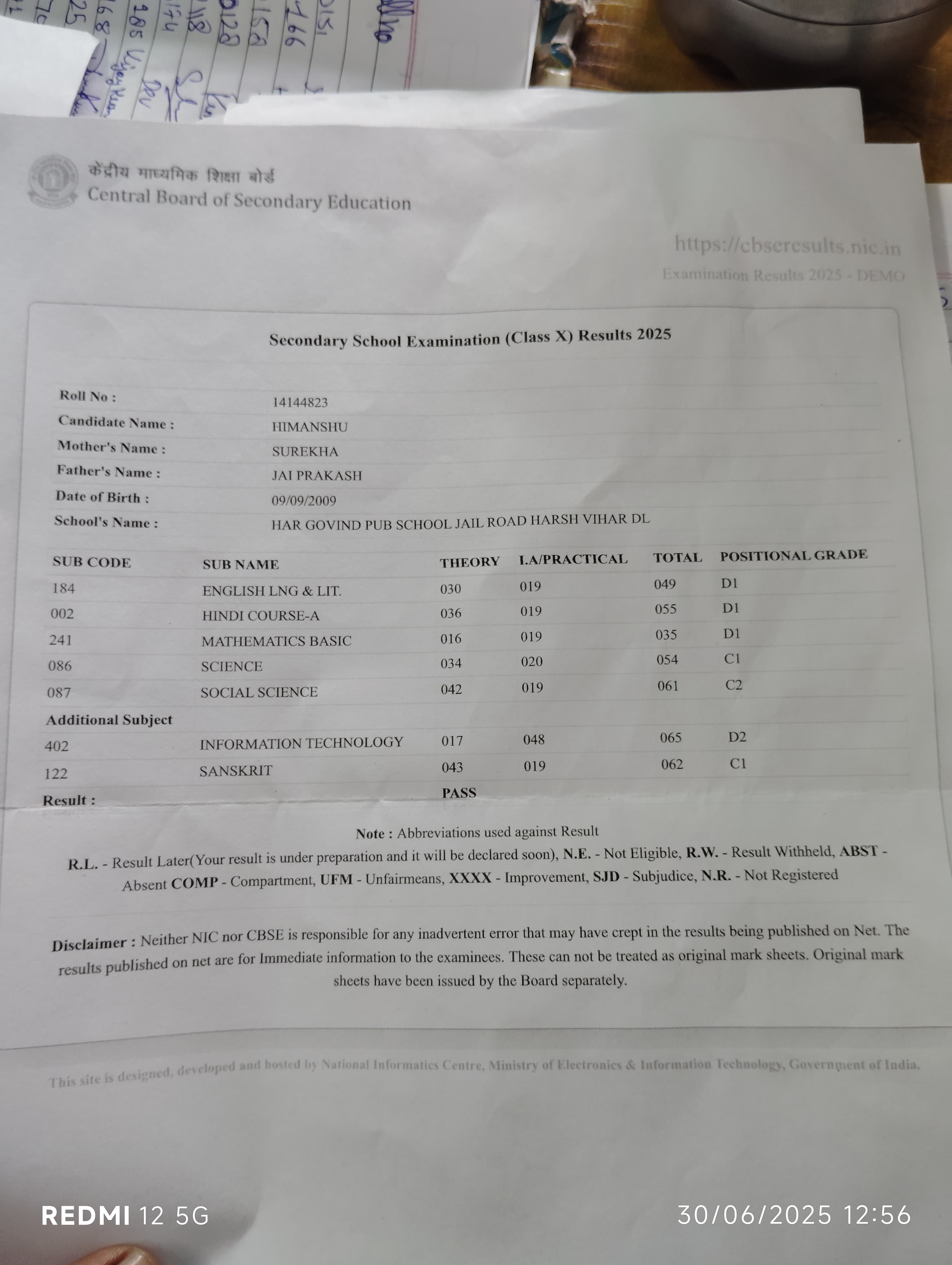 | Exam | Full Marks | Pass Marks | Marks Obtained |