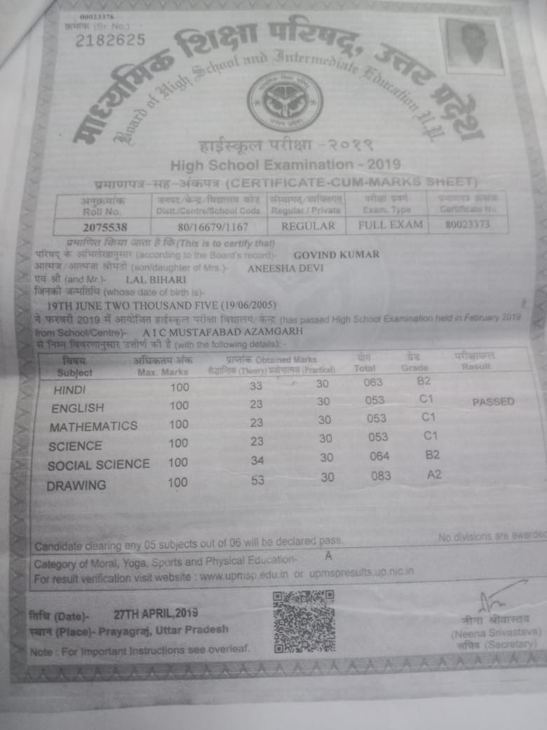 | Exam | Full Marks | Pass Marks | Marks Obtained |
