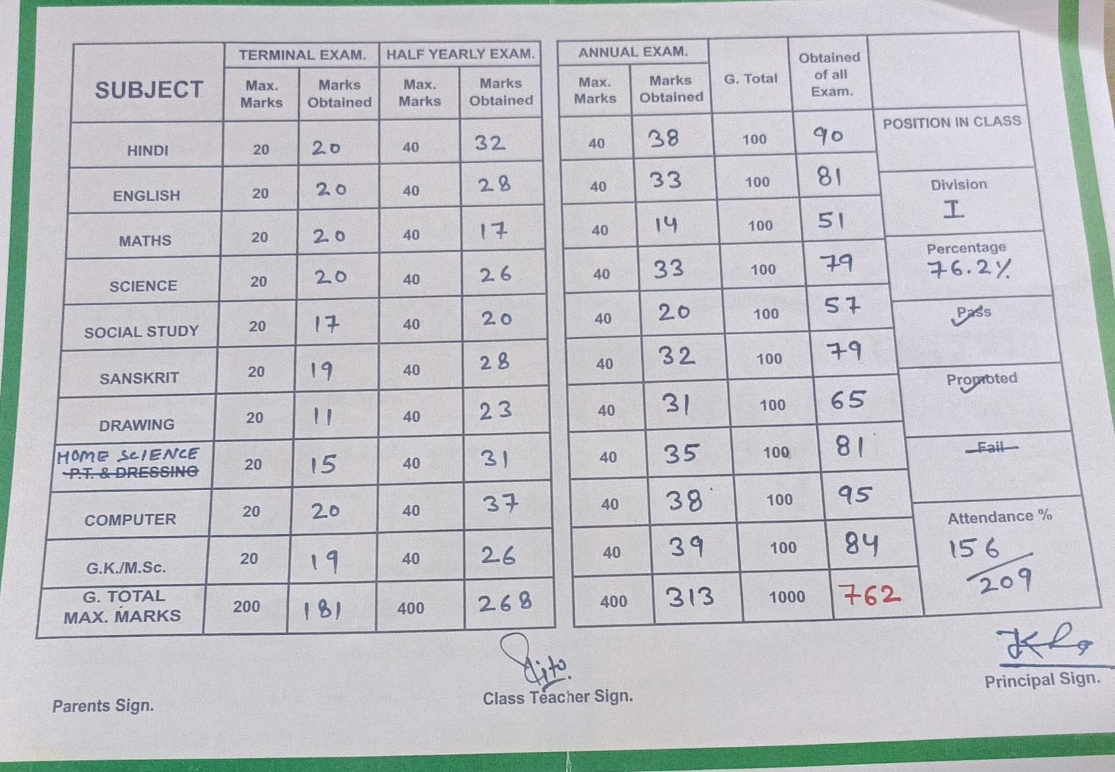 | Exam | Full Marks | Pass Marks | Marks Obtained |