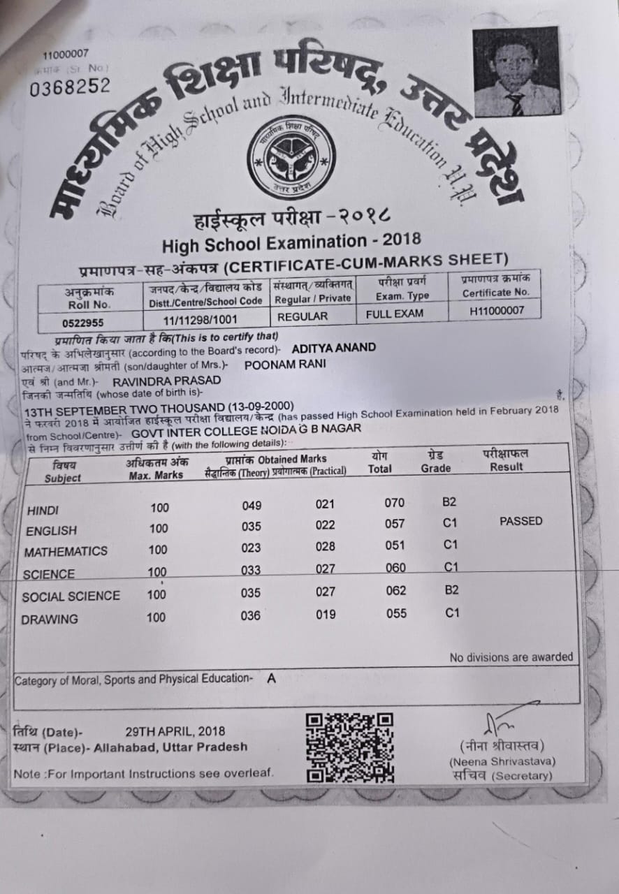 | Exam | Full Marks | Pass Marks | Marks Obtained |