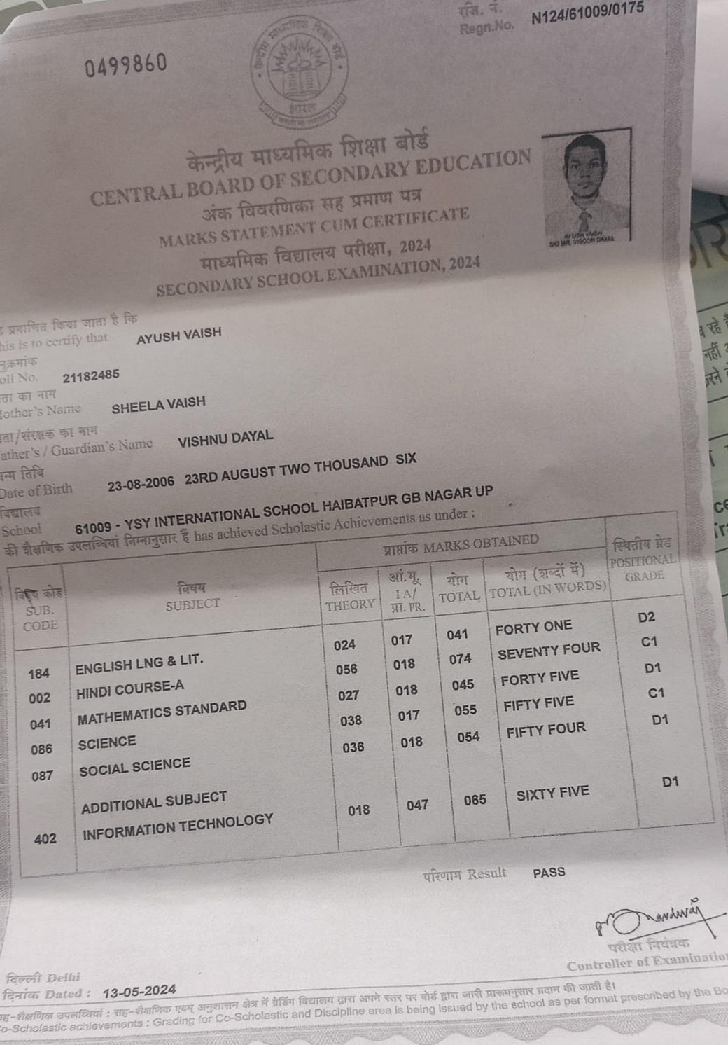 | Exam | Full Marks | Pass Marks | Marks Obtained |