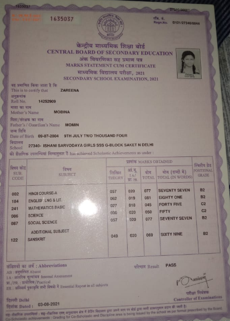 | Exam | Full Marks | Pass Marks | Marks Obtained |