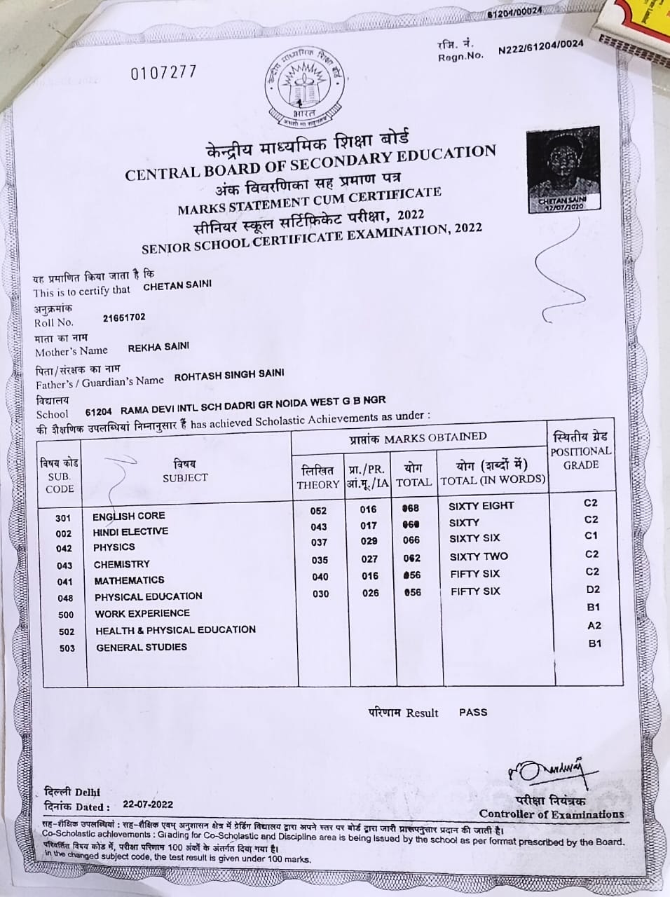 | Exam | Full Marks | Pass Marks | Marks Obtained |