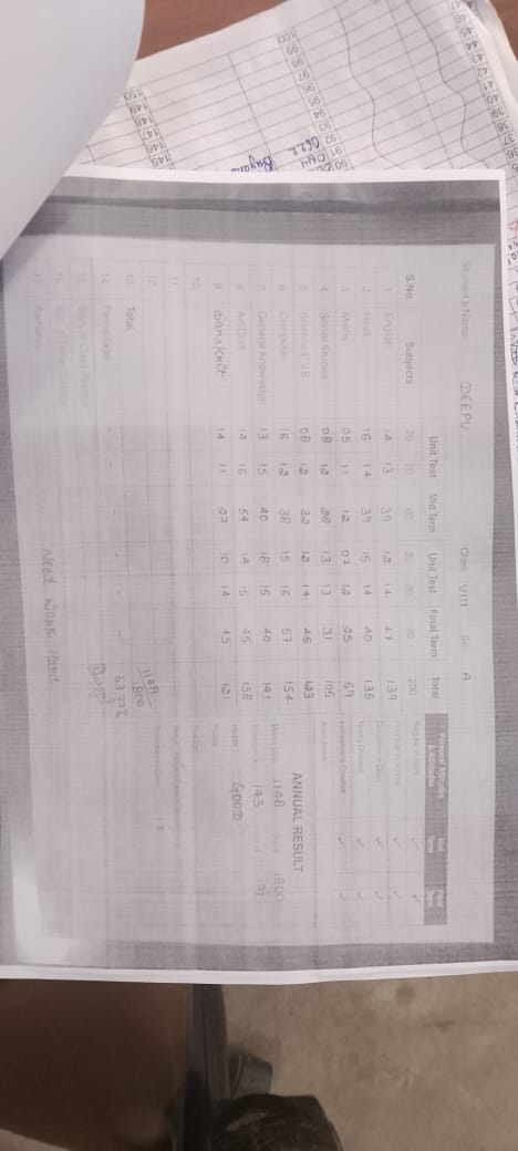 | Exam | Full Marks | Pass Marks | Marks Obtained |
