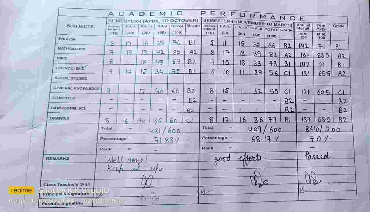 | Exam | Full Marks | Pass Marks | Marks Obtained |