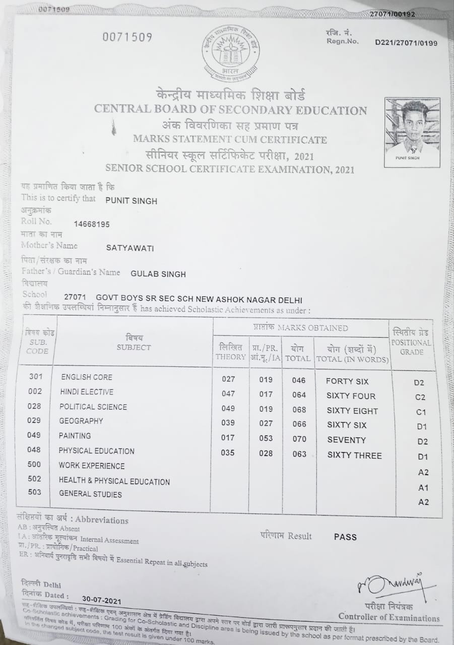 | Exam | Full Marks | Pass Marks | Marks Obtained |