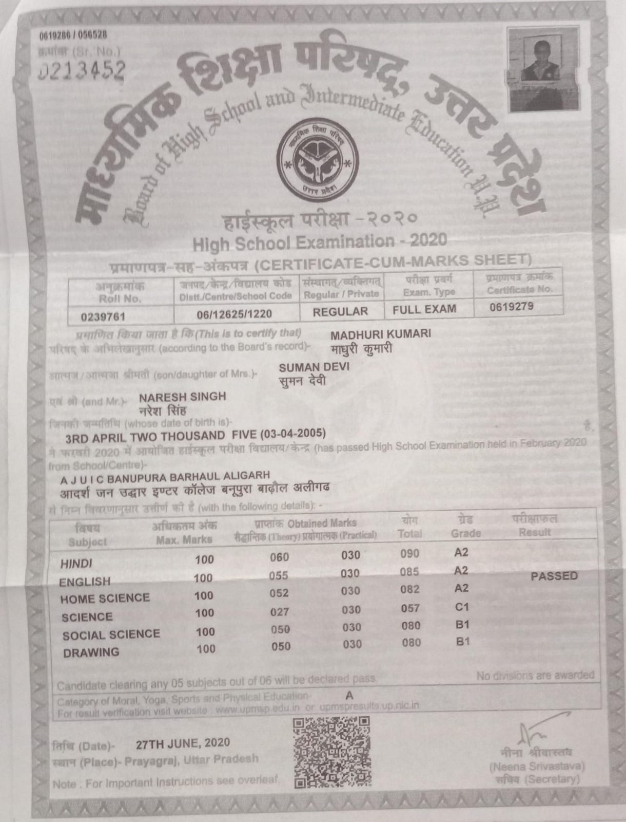 | Exam | Full Marks | Pass Marks | Marks Obtained |