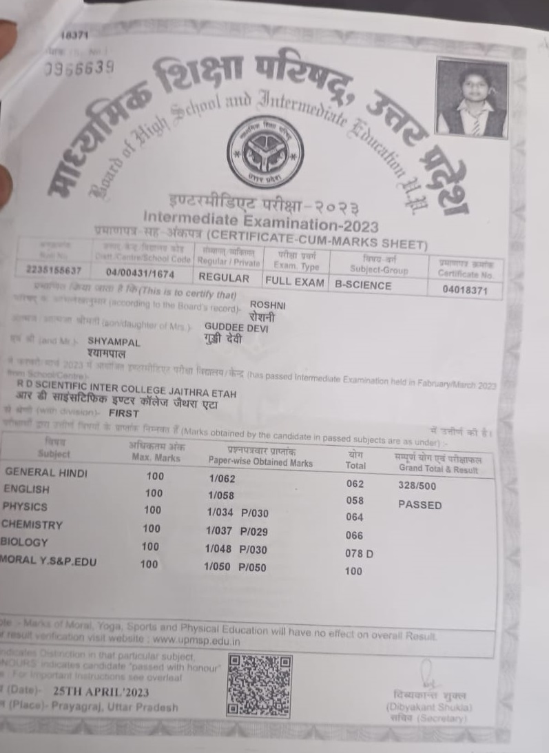 | Exam | Full Marks | Pass Marks | Marks Obtained |