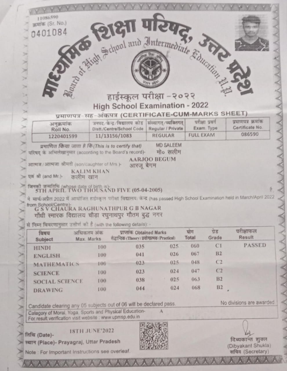 | Exam | Full Marks | Pass Marks | Marks Obtained |