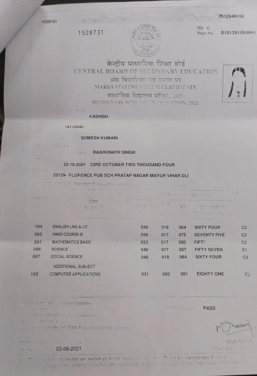 | Exam | Full Marks | Pass Marks | Marks Obtained |