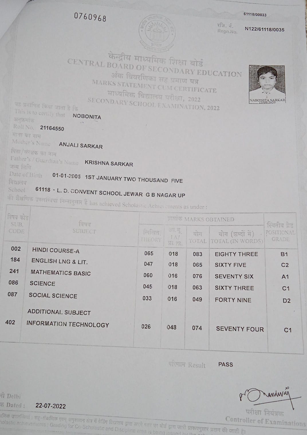 | Exam | Full Marks | Pass Marks | Marks Obtained |