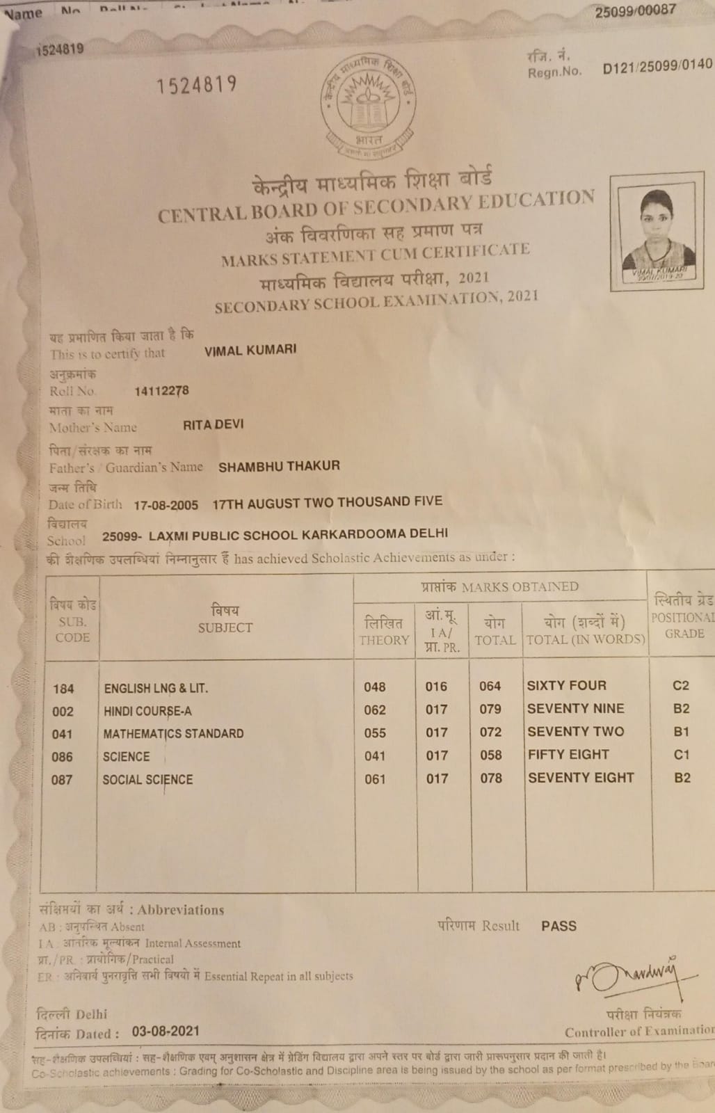 | Exam | Full Marks | Pass Marks | Marks Obtained |