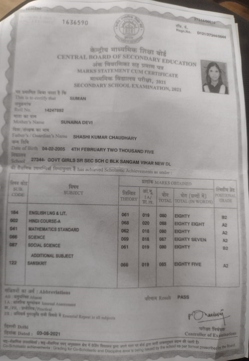| Exam | Full Marks | Pass Marks | Marks Obtained |