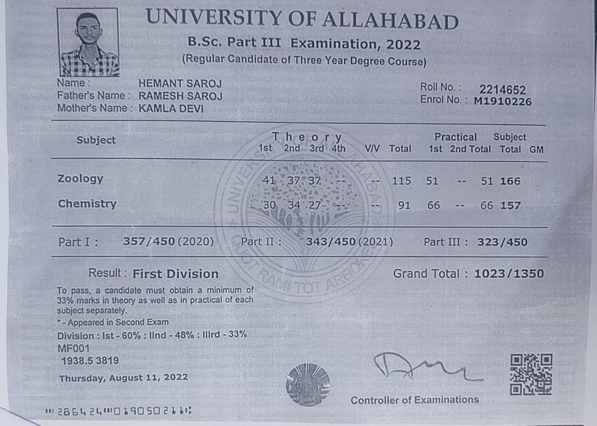 | Exam | Full Marks | Pass Marks | Marks Obtained |