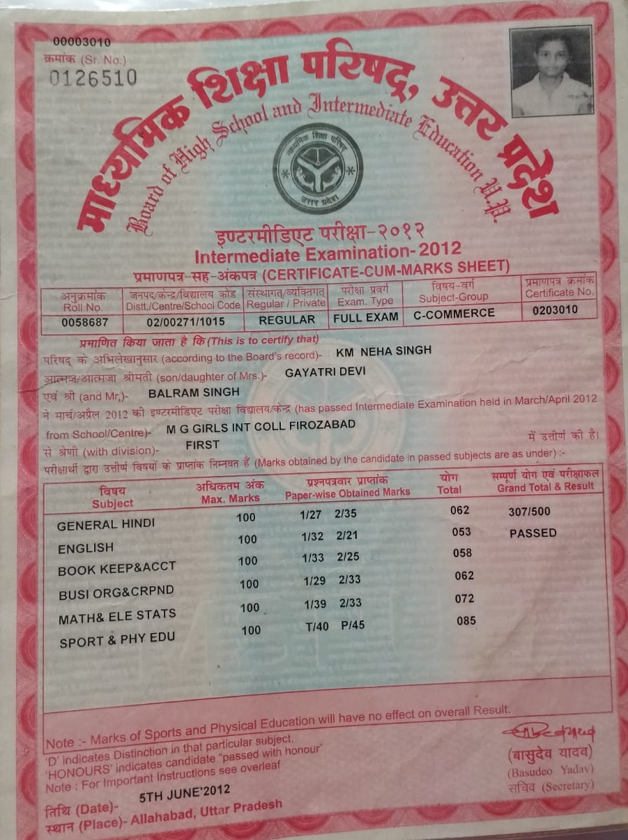 | Exam | Full Marks | Pass Marks | Marks Obtained |