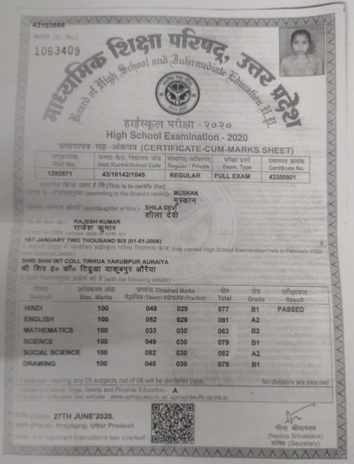 | Exam | Full Marks | Pass Marks | Marks Obtained |