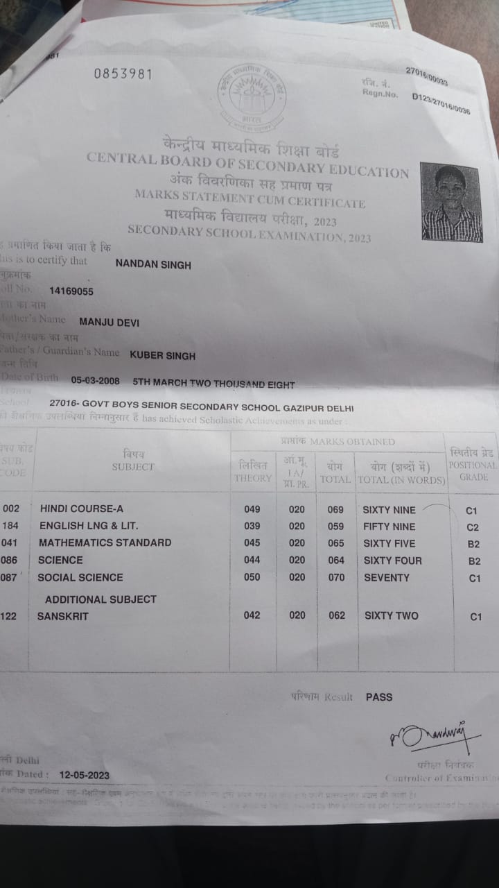 | Exam | Full Marks | Pass Marks | Marks Obtained |