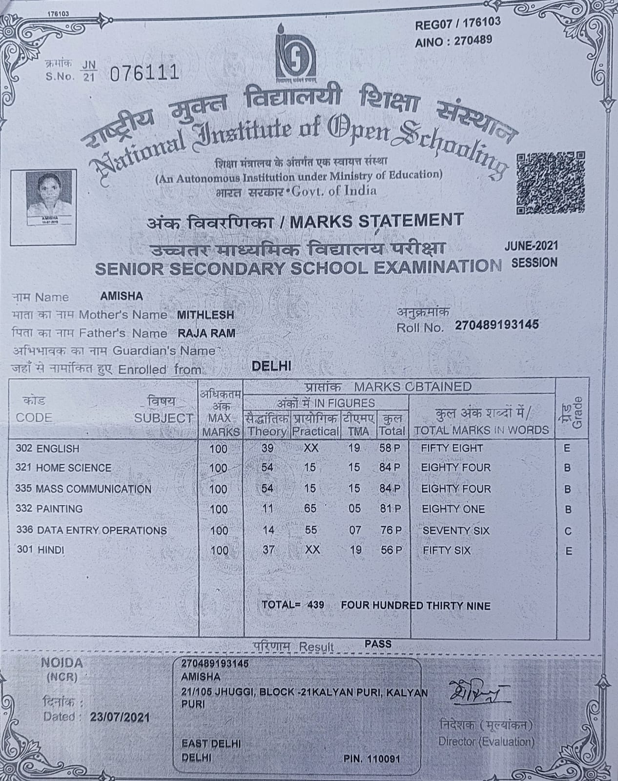 | : | 12/469, Kalyan Puri, Delhi-91, East Delhi | |