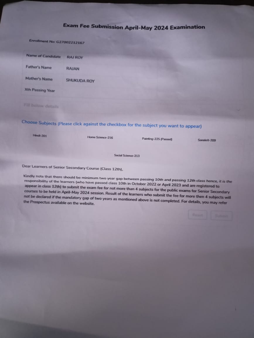 | Exam | Full Marks | Pass Marks | Marks Obtained |