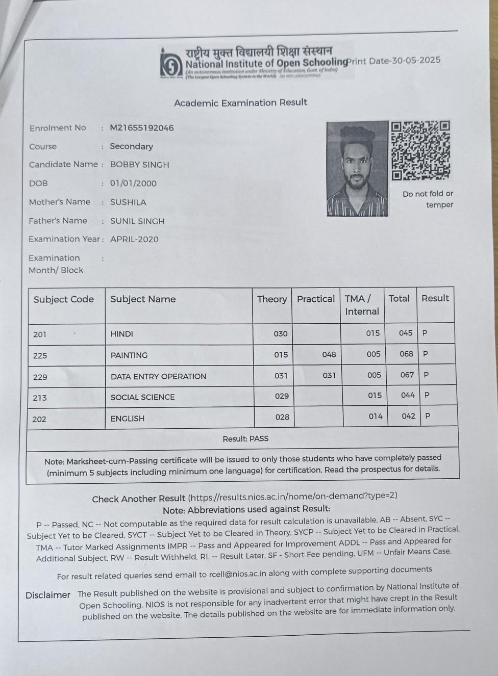 | Exam | Full Marks | Pass Marks | Marks Obtained |
