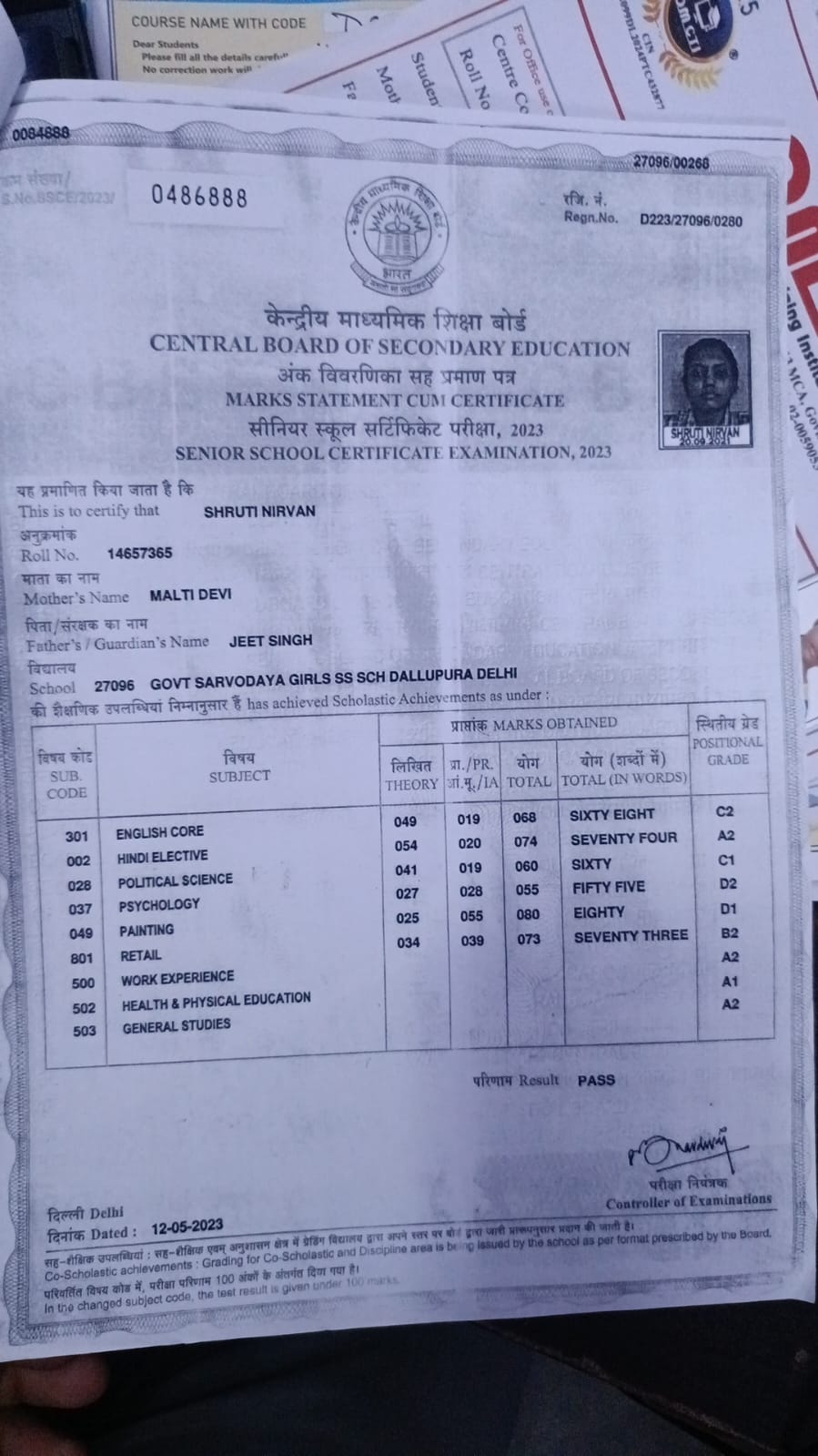 | Exam | Full Marks | Pass Marks | Marks Obtained |