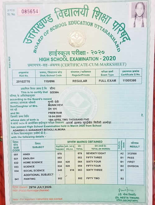 | Exam | Full Marks | Pass Marks | Marks Obtained |