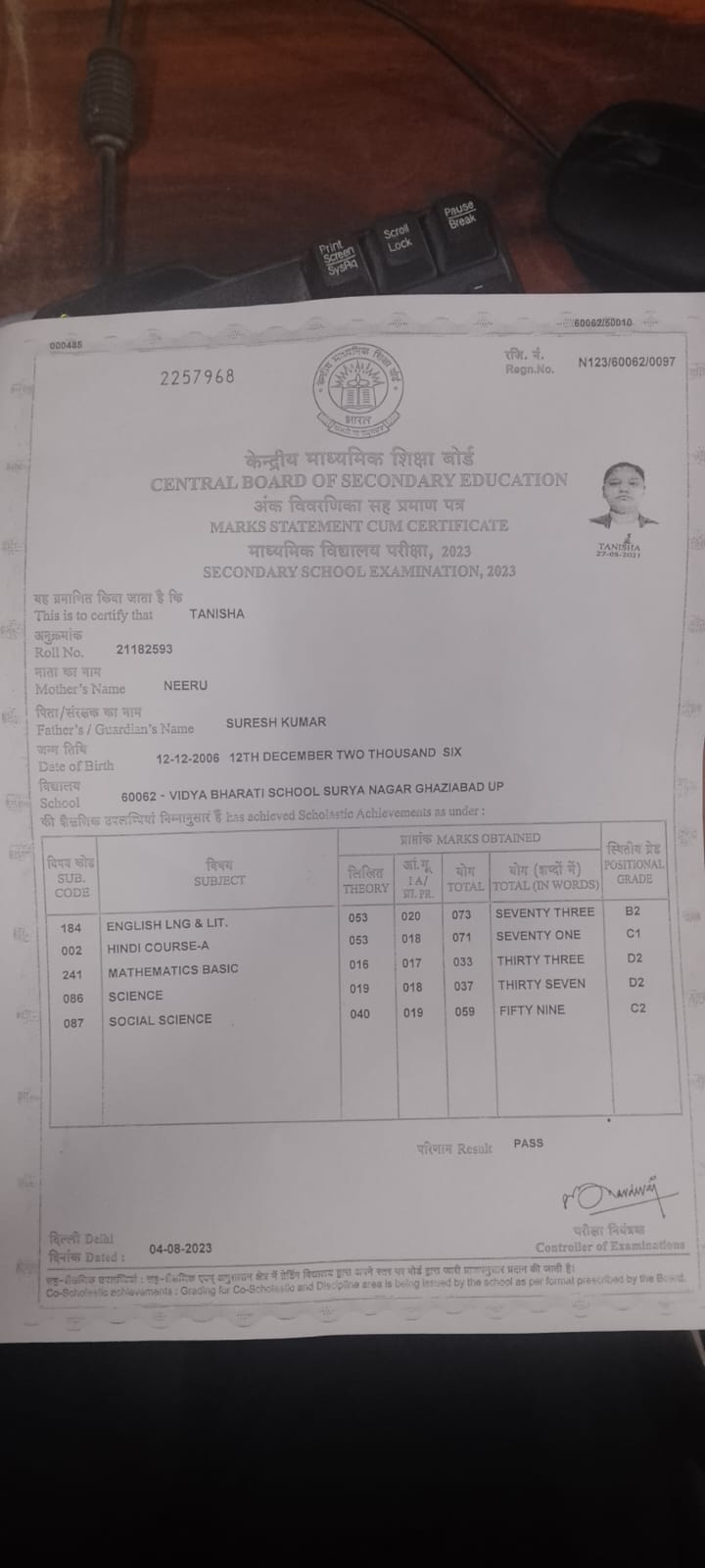 | Exam | Full Marks | Pass Marks | Marks Obtained |