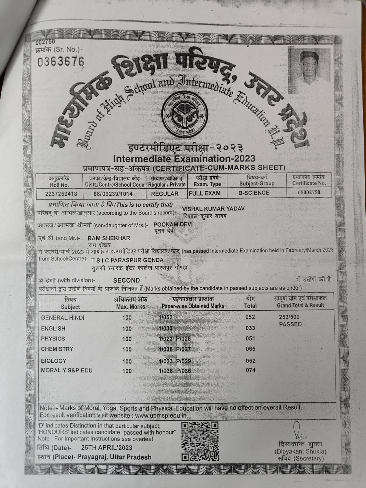 | Exam | Full Marks | Pass Marks | Marks Obtained |