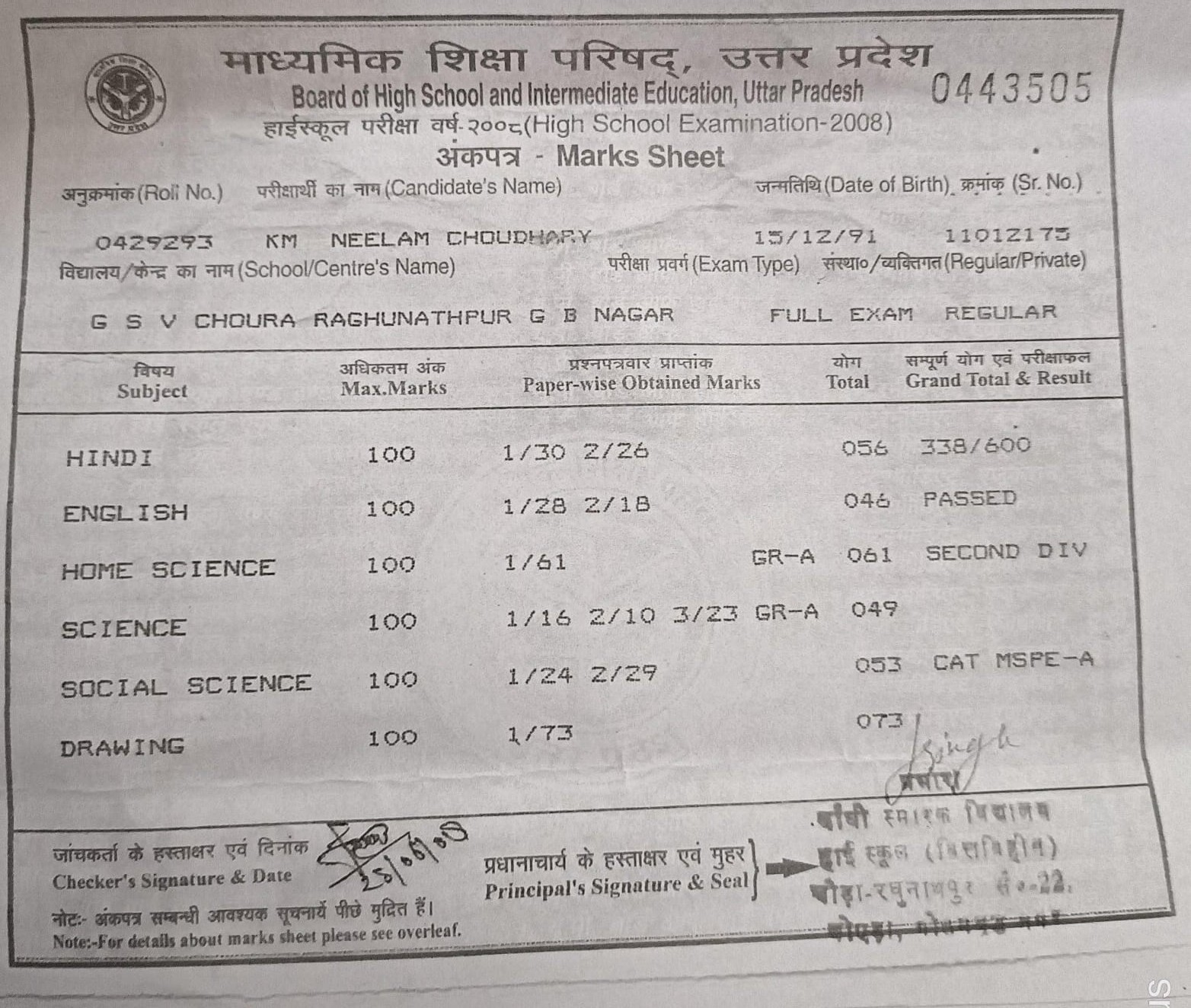 | Exam | Full Marks | Pass Marks | Marks Obtained |