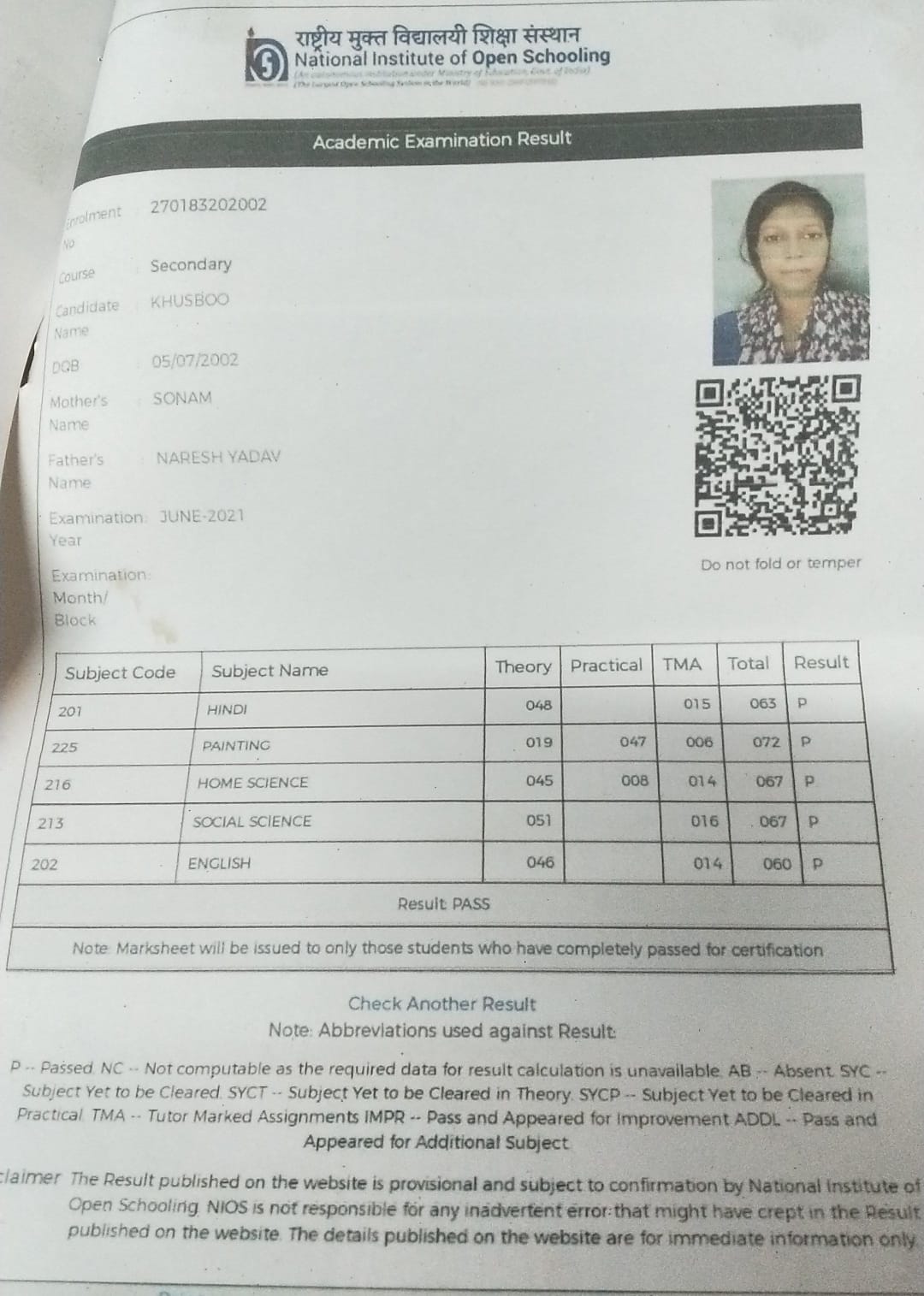 | Exam | Full Marks | Pass Marks | Marks Obtained |