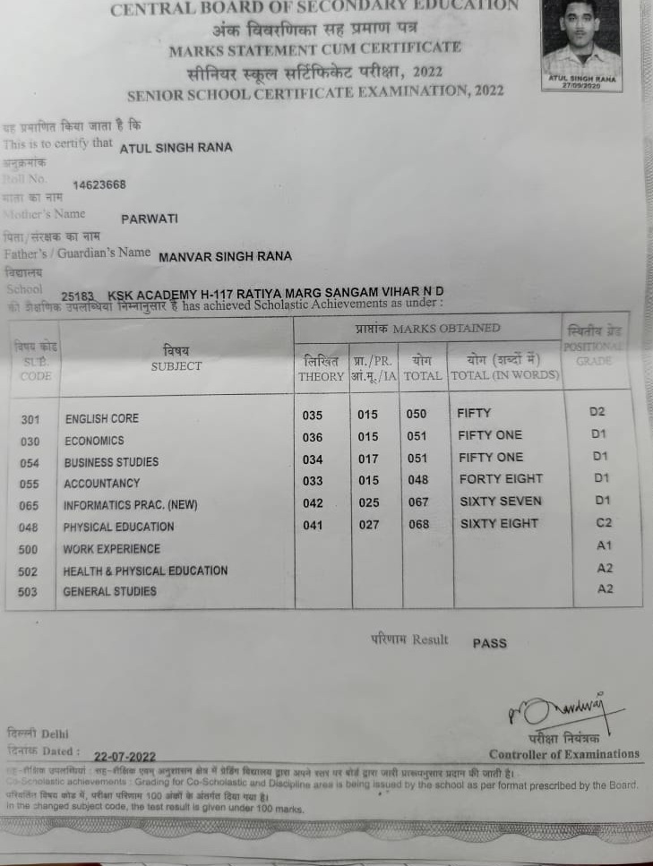 | Exam | Full Marks | Pass Marks | Marks Obtained |