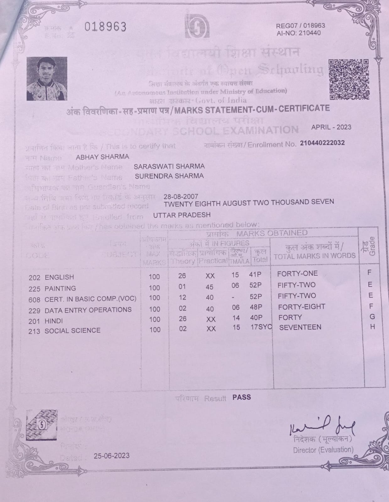 | Exam | Full Marks | Pass Marks | Marks Obtained |